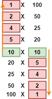 - 따라서 루트 100 을 기준으로 이전 숫자만을 이용해 나눗셈을 진행하여 계산량을 줄이면 된다.