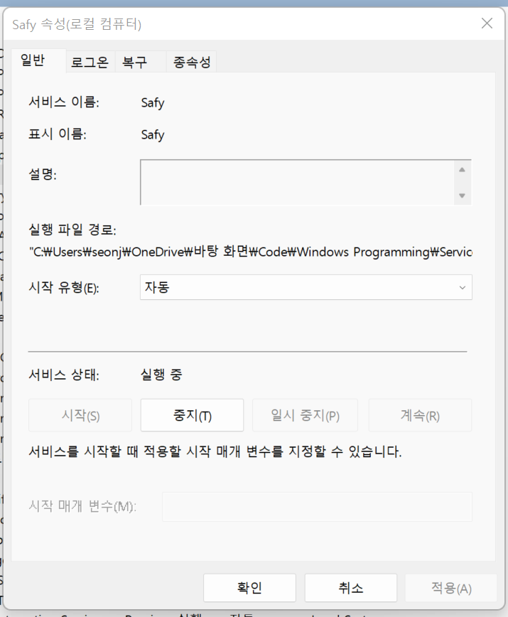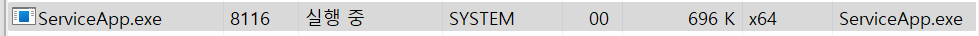 - 등록 후, 서비스 시작 시 실행된 ServiceApp.exe